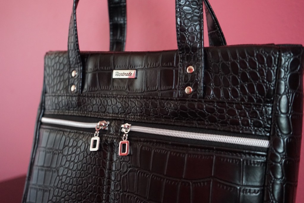 Sourcing the right material was critical so you know I had to reach out to my friends at Fabric Wholesale Direct and I found exactly what I was looking for. The exterior is constructed with black Ottertex Alligator Vinyl Leather and the lining is made with black waterproof canvas. This handbag would not be complete without bag hardware from Wawak