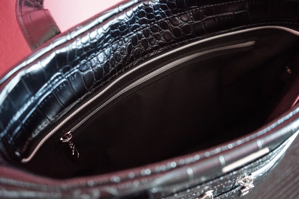 Of course, it’s important to make sure your exterior design is luxurious but don’t sleep on the interior of your handbag. The interior lining is made from black waterproof canvas giving the bag a strong structure and easy to clean. The interior lining features a zipper pocket large enough to hold your beauty products.