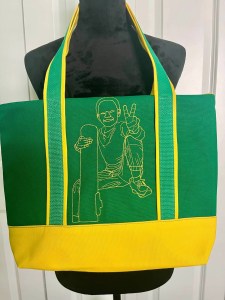 Now it’s time to assemble your custom tote bag. Keep in mind our tote bags are not ordered in bulk and embroidered on. Yours truly Stitched By Lovely Tee actually sews each piece with durable canvas fabric and thread. Your custom tote bag will be dependable and strong enough to handle heavy duty carrying.