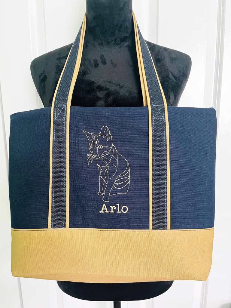 Oh hey there gorgeous! The creativity is flowing and I wanted to share with you my latest project. Our custom line art embroidery tote bags are made to order with your photograph turned into stunning line art tote bag.
